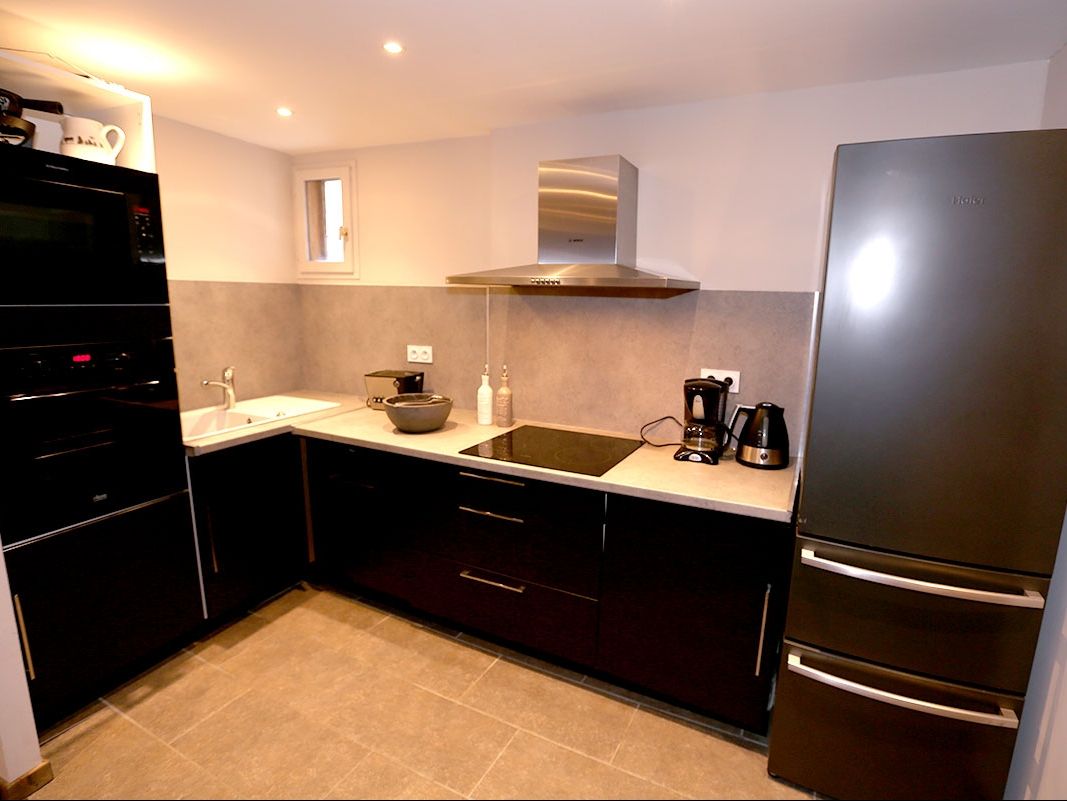 Sfeervolle woonkamer met een zithoek met 2-persoons slaapbank, televisie, DVD-speler, eettafel en een compleet ingerichte open keuken met o.a. keramische kookplaten, koelkast (met vriesgedeelte), magnetron, oven en vaatwasser. Verder beschikt dit appartement over een wasmachine en droger, Wi-Fi internetverbinding en een balkon op het zuiden.