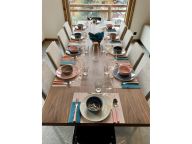 Gezellige woonkamer met een comfortabele zithoek, televisie en een eettafel. Open keuken met o.a. een eettafel, kookplaten, twee ovens, magnetron, waterkoker, broodrooster, koffiezetapparaat en een vaatwasser.