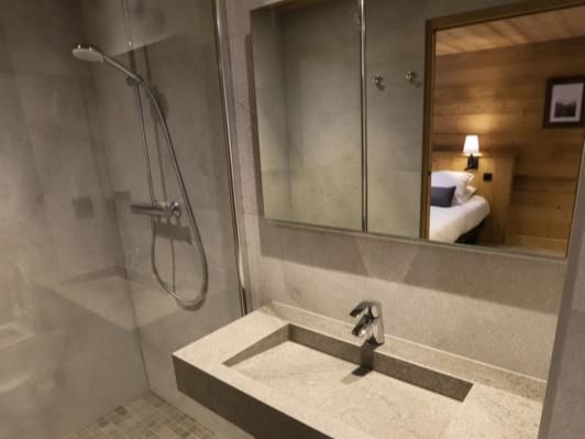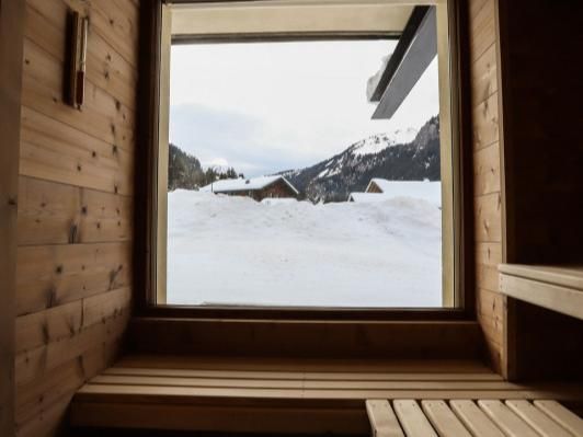 Op de benedenverdieping van het chalet is de privé wellnessruimte te vinden waar de gasten van Appartement Le Sommet toegang hebben tot hun eigen whirlpool en sauna. Tevens is hier ook een badkamer met douche en toilet. Vanuit deze ruimte heb je direct toegang tot de tuin.