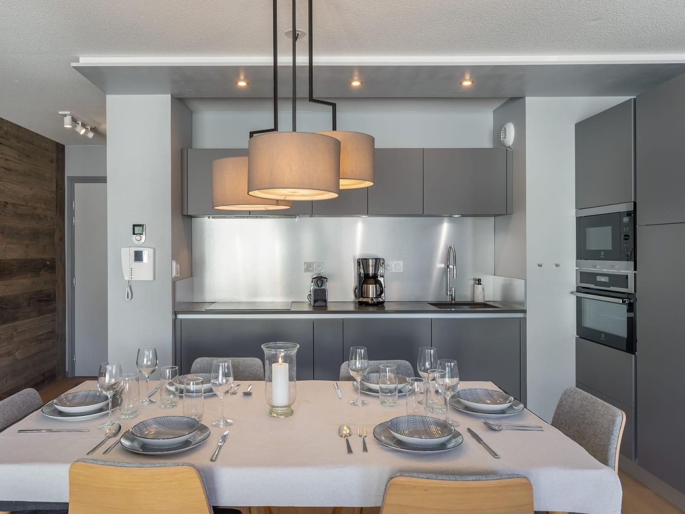 Sfeervolle woonkamer met een zithoek met televisie, eettafel en een compleet ingerichte open keuken met o.a. een kookplaat, koelkast (met vriesgedeelte), oven, magnetron, koffiezetapparaat (filter), Nespresso-apparaat, broodrooster en vaatwasser. Verder beschikt dit appartement over een wasmachine, droger, Wi-Fi en een terras met zitgelegenheid.