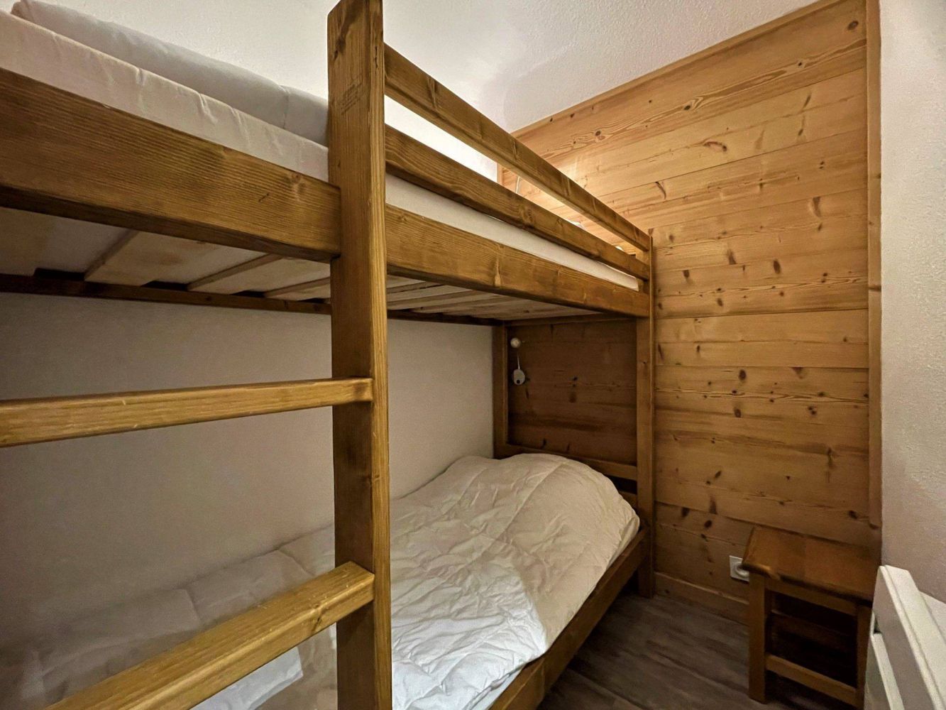 Eén slaapkamer met een 2-persoonsbed en een slaapcabine met een stapelbed. Badkamer met douche. Apart toilet.