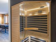 Comfortabele woonkamer met 2-persoonsslaapbank, televisie en eettafel. Open keuken met o.a. inductiekookplaten, combi-oven, koelkast (met vriesvak), broodrooster, waterkoker, koffiezetapparaat en een vaatwasser. In het appartement is een sauna en een outdoor hottub te vinden. Verder beschikt het appartement over een kluis.