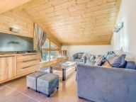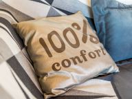 Woonkamer met een 2-persoons slaapbank, televisie, DVD-speler, eettafel en een compleet ingerichte keuken met o.a. een kookplaat, koelkast (met vriesvak), combi-oven, cafetière, Nespresso koffiezetapparaat, waterkoker, broodrooster, racletteset, fondueset en vaatwasser. Vanuit de woonkamer heb je toegang tot een balkon op het zuidwesten. Er is Wi-Fi in het appartement en een combi wasmachine en droger.