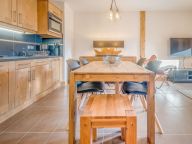 Woonkamer met een 2-persoons slaapbank, televisie, DVD-speler, eettafel en een compleet ingerichte keuken met o.a. een kookplaat, koelkast (met vriesvak), combi-oven, cafetière, Nespresso koffiezetapparaat, waterkoker, broodrooster, racletteset en vaatwasser. Vanuit de woonkamer heb je toegang tot een balkon op het zuidwesten. Er is Wi-Fi in het appartement en een combi wasmachine en droger.