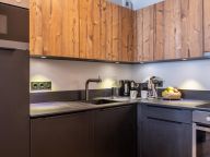 Gezellig en modern ingerichte woonkamer met 2-persoonslaapbank (160x190) en flatscreen televisie. De open ingerichte keuken heeft o.a. een keramische kookplaat, oven, magnetron, koelkast, vaatwasser, koffiezetapparaat, broodrooster en waterkoker. Balkon.