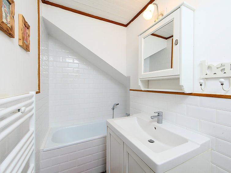 Twee slaapkamers, waarvan één met een 2-persoonsbed en één 5-persoonskamer met twee stapelbedden (80 x 190 cm) en een 1-persoonsbed. Twee badkamers, waarvan één met bad en één met douche en toilet. Apart toilet.