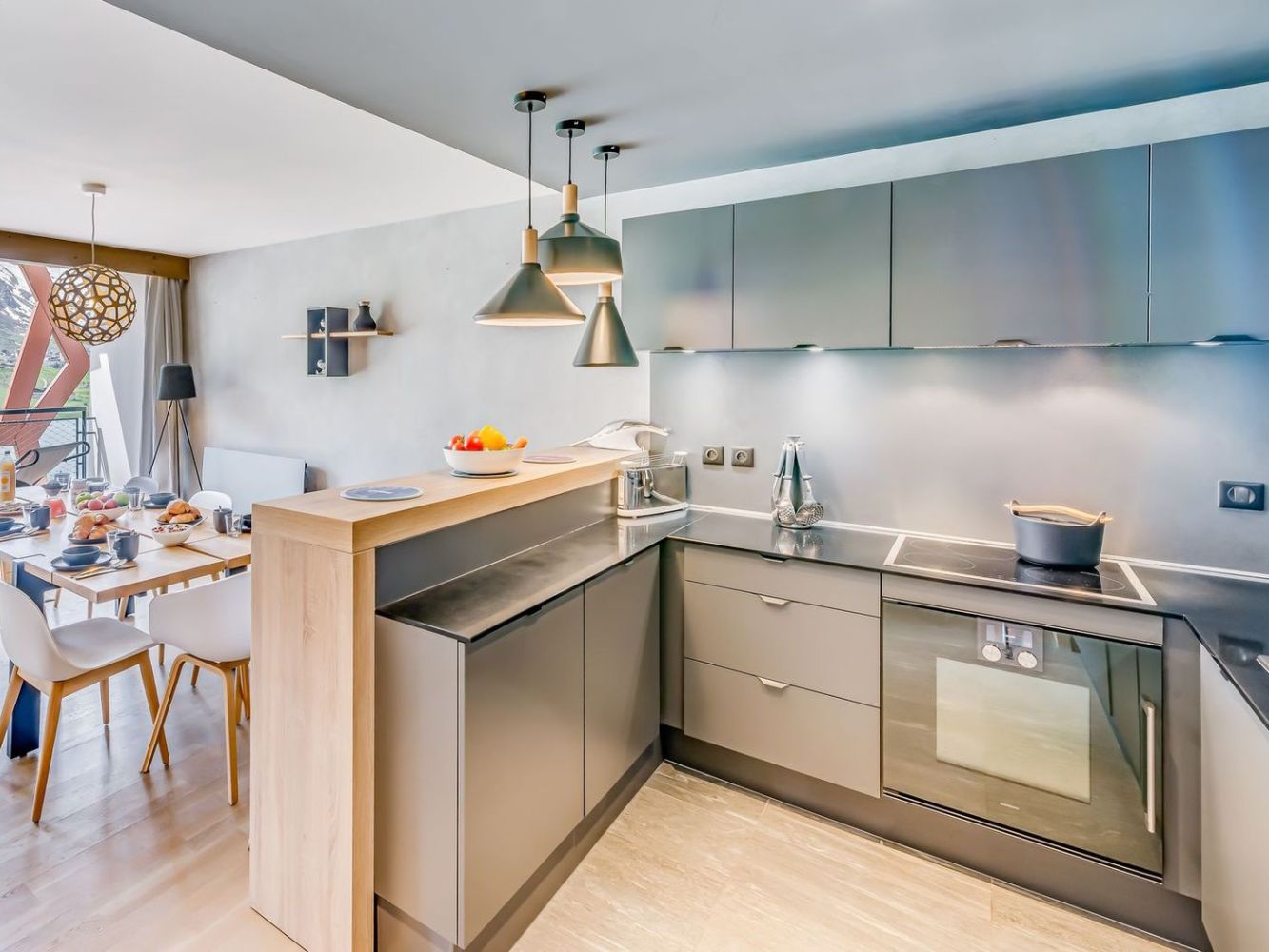 Woonkamer met zithoek, televisie, een eettafel en een compleet ingerichte keuken met o.a. een kookplaat, koelkast (met vriesvak), oven, magnetron, vaatwasser, waterkoker, Nespresso koffiezetapparaat en wasmachine. Vanuit de woonkamer heb je toegang tot een balkon op het zuiden. Verder beschikt dit appartement over twee skikluisjes met skischoenendrogers en een Wi-Fi internetverbinding.