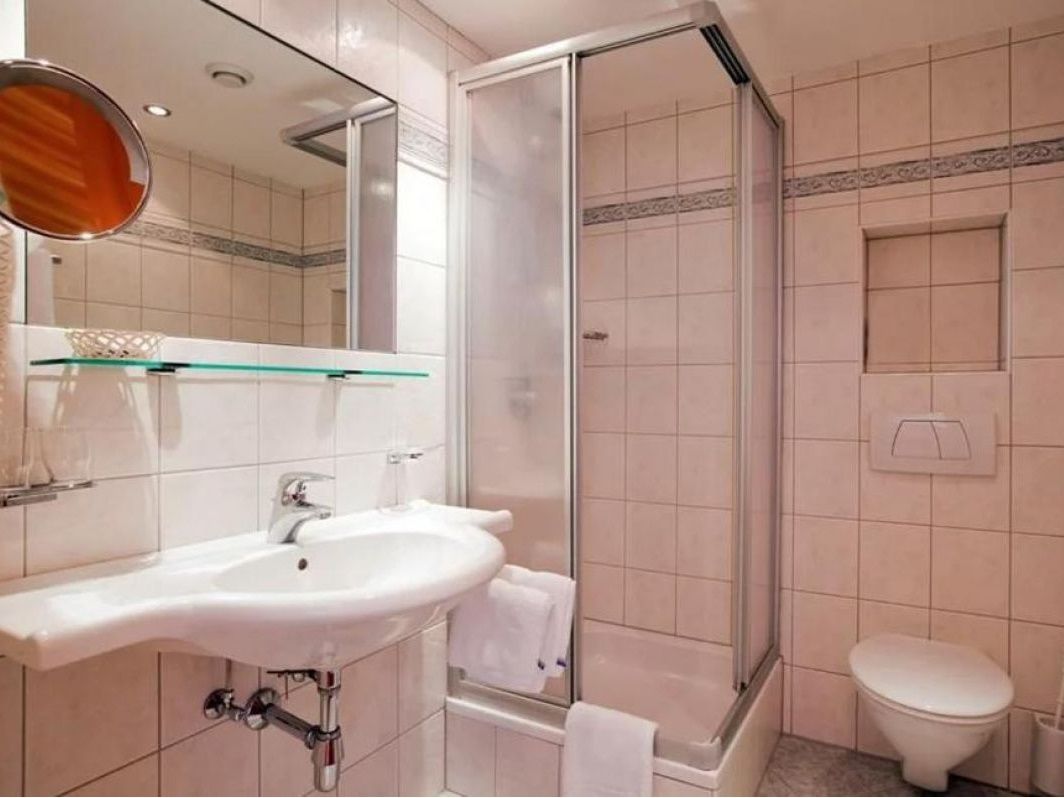 Op de tussenverdieping is een gezellige en ruime woon-/eetkamer met diverse eethoeken in Tiroler stijl. Daarnaast is er op deze verdieping ook een gedeelde sauna (met chalet Tiroler Hof).