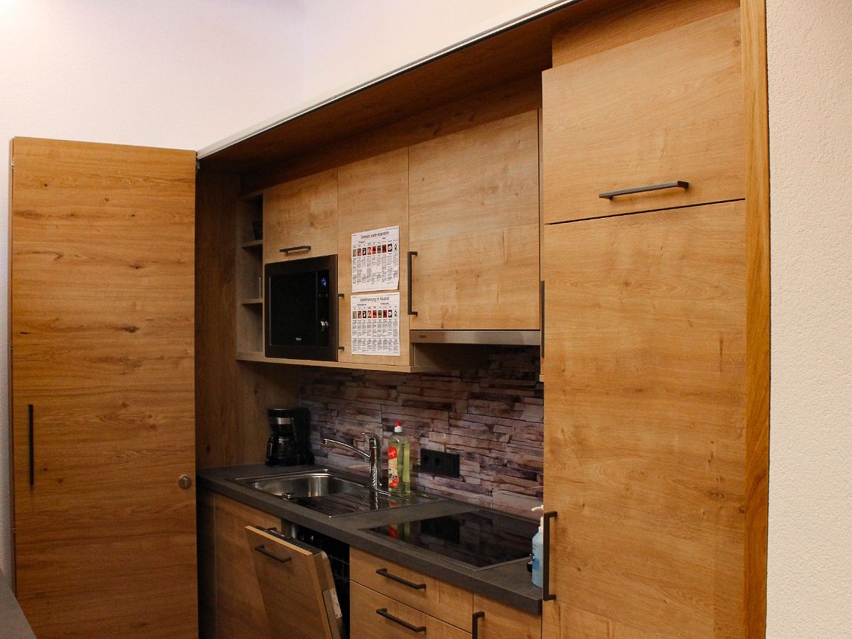 Comfortabel ingerichte woon-/slaapkamer met een 2-persoonsbed, 2-persoons slaapbank, eethoek en een kleine keuken voorzien van o.a. een kookplaten, koffiezetapparaat en een vaatwasser. Badkamer met douche en toilet