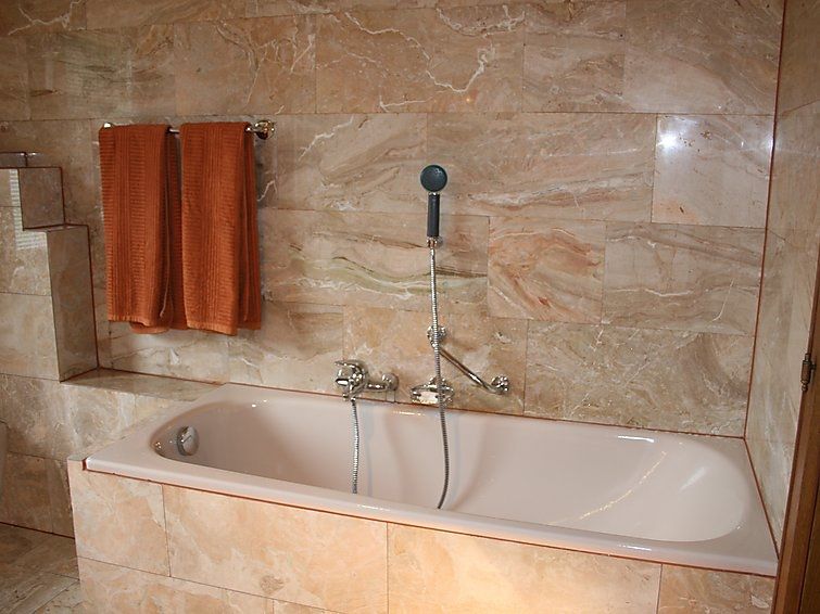 Twee slaapkamers met ieder een 2-persoonsbed. Twee badkamers, waarvan één met bad, douche en toilet en één met bad en toilet.