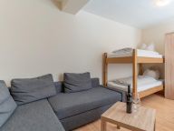In de woonkamer zijn twee 1-persoonsbedden (160 x 200) en een stapelbed (90 x 190 cm). Badkamer met douche en toilet.