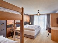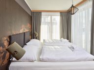 In het souterrain bevindt zich een slaapkamer met een 2-persoonsbed en stapelbed en en-suite badkamer met bad, sauna en toilet. Skiberging en één parkeerplek in de garage en twee parkeerplekken voor het chalet.