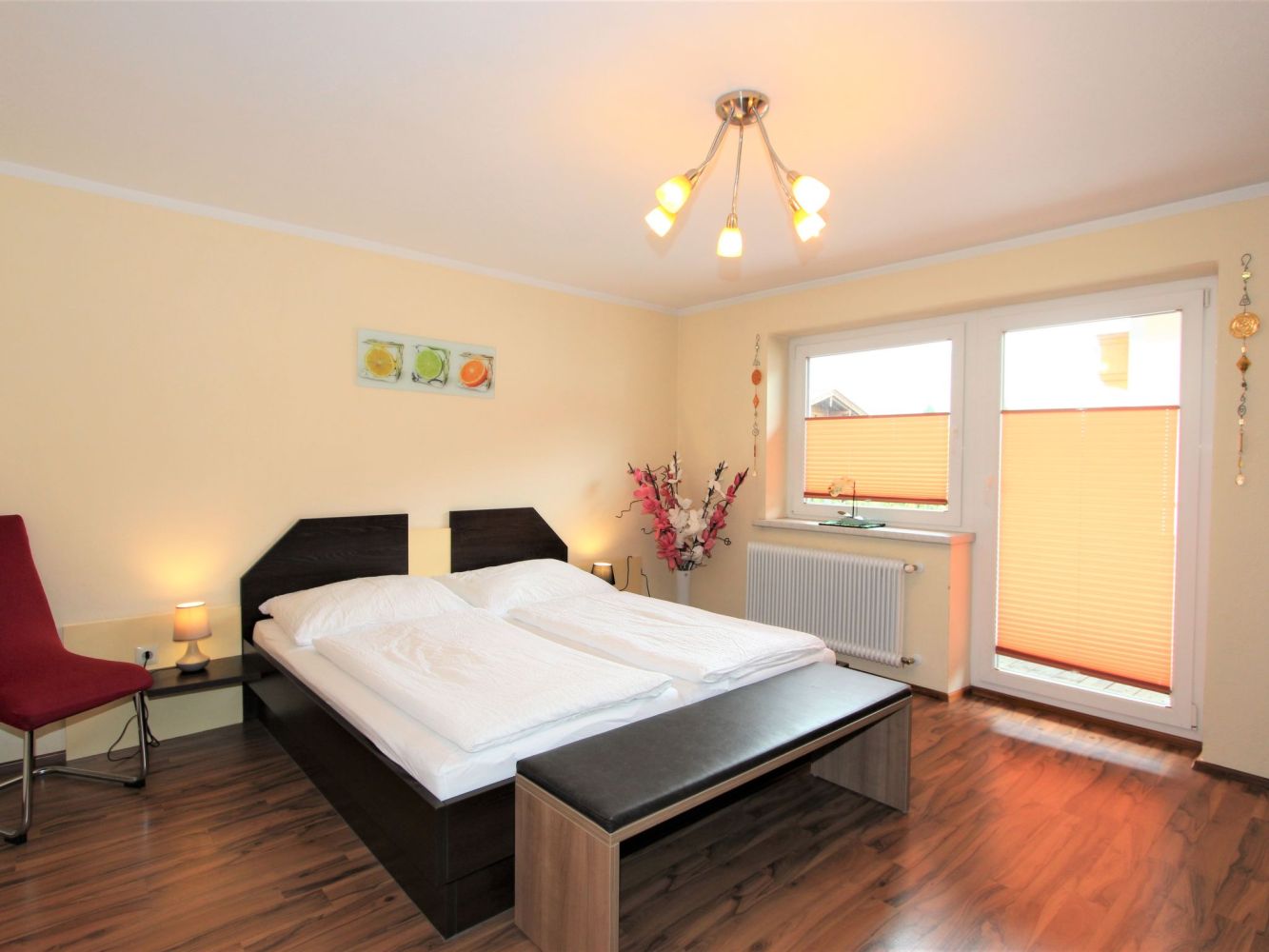 Drie slaapkamers met ieder een 2-persoonsbed. Badkamer met douche. Apart toilet.